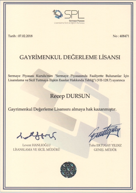 Recep DURSUN SPK Lisans Numarası ( 408471 ) |